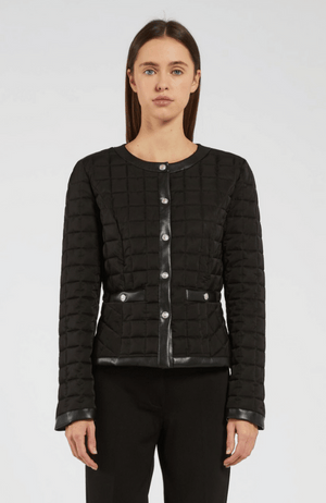 Expertly crafted, the ALFREDO JACKET is a must-have for any fashion-forward individual. Its chic black quilted design is accentuated by leather trim detailing, elevating any look to the next level. Stay warm and stylish this season with this versatile jacket.