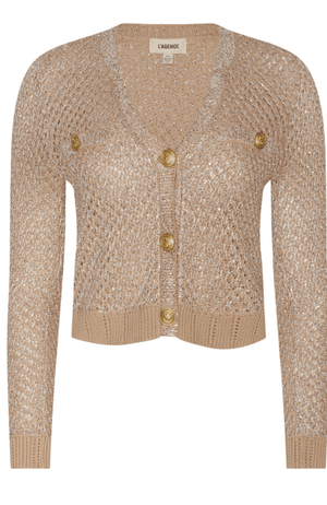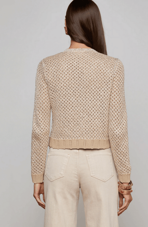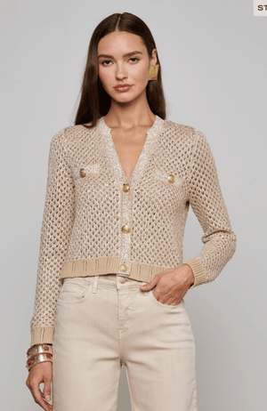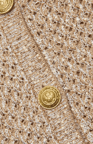 Elevate your ensemble with the BLANCA SEQUIN CARDIGAN in Natural/MultI Gold—an effortlessly chic layer that combines delicate sparkle with unparalleled comfort. Crafted from sequined pointelle knit, this lightweight cardigan features refined faux welt pockets and embossed dome button closures, adding subtle sophistication to your look. Its neutral tan hue ensures versatile styling, perfect for transitioning seamlessly from day to evening wear.
