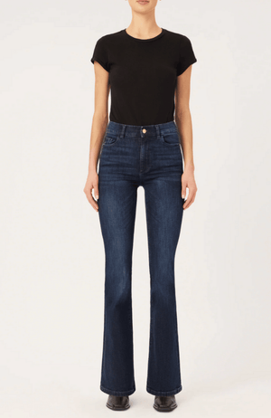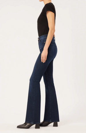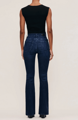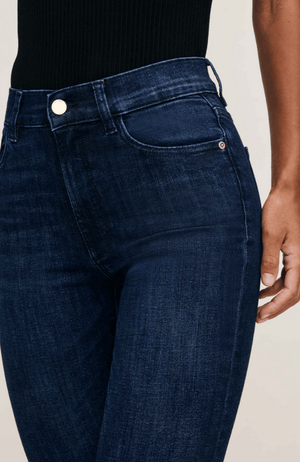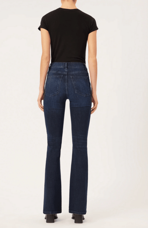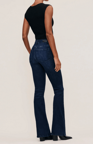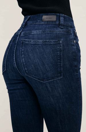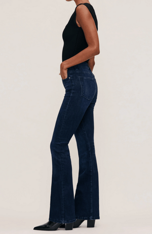 Introducing the BRIDGET BOOT HIGH RISE in MEDITERRANEAN. Featuring their innovative Instasculpt technology, this high-rise, boot cut fit offers a 33" inseam for a smooth and sculpted look. The beige tinted, dark indigo wash has minimal fading, tonal stitching, brushed gold hardware and a clean hem for a stylish and polished finish.