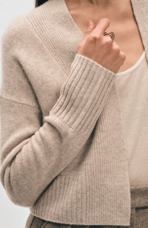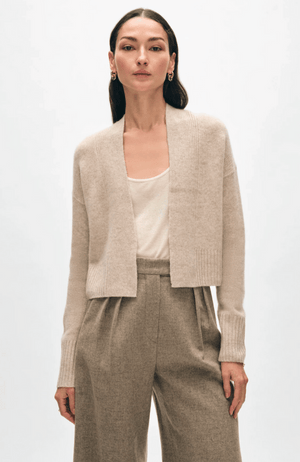 Introducing the Cashmere Open-Front Cardigan - your new go-to layer for luxurious warmth without bulk. Made from featherweight two-ply cashmere, its shrunken fit and wide rib finishes create a flattering and refined silhouette. Perfect for effortless styling over tees, dresses, or blouses.
