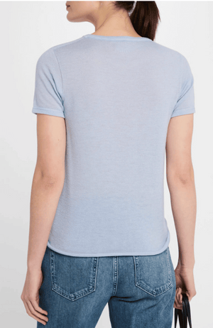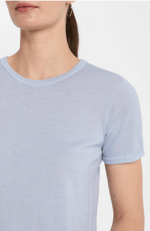 Indulge in luxury with our CASHMERE TEE in OCEAN. Handcrafted in Italy, this short-sleeve T-shirt is made from 100% machine washable cashmere (developed for Loro Piana) for a soft and comfortable fit. Its light weight makes it perfect for any season. Elevate your wardrobe with this exclusive piece.