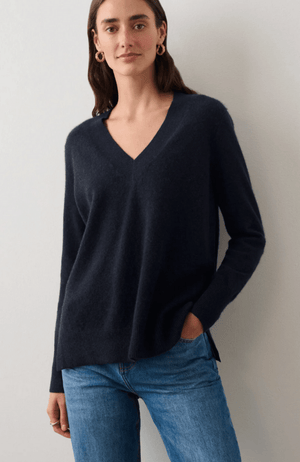 Look timeless and elegant in our luxurious CASHMERE VNECK TUNIC. This sophisticated cashmere sweater features a ribbed v neck, side slits, and an elongated silhouette that will lend a touch of refinement to any outfit. With its relaxed silhouette and timeless black color, this elegant piece will become a staple in your wardrobe.
