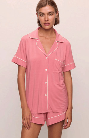 The PJ that started it all. Made from TENCEL™ Modal fibers and a touch of elastane, this buttery soft fabric is verified by OEKO-TEX® Standard 100, meaning it’s dyed with safe and non-toxic dyes. This relaxed set has a roomy shape, extra coverage, and a comfortable fit that you can wear and gift with confidence. The short sleeve top features a loose fit, button front, notch collar, and functional pocket, paired with relaxed shorts for ease and comfort. Pairs well with our everyday lingerie and blissful ZZZ’s.
