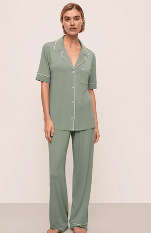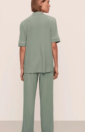 Experience timeless comfort with the GISELE PJ SET, crafted from luxurious TENCEL™ Modal fibers blended with a touch of elastane. This ultra-soft, OEKO-TEX® Standard 100 certified fabric ensures gentle, non-toxic wear. Featuring elegant contrast piping, a button-front top with a classic notch collar and functional pocket, and low-rise straight-leg pants with a discreet elastic waistband, this set redefines relaxed sophistication. Perfectly paired with everyday lingerie, it invites you to unwind in effortless style and serenity.