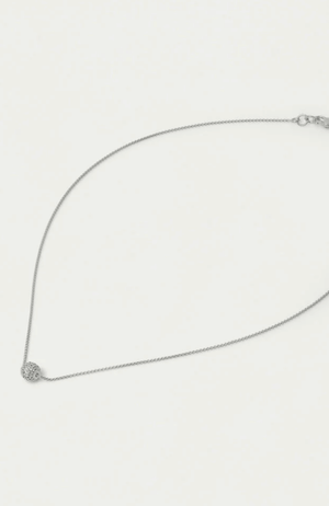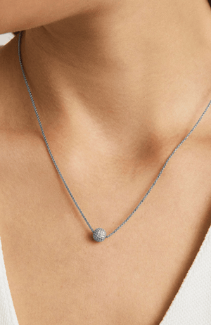 Elevate your everyday style with the Giselle Pavé Pendant. This elegant, small spherical pendant features meticulously hand-set cubic zirconia stones that shimmer subtly against Rhodium Plated backdrop. Designed to add a refined touch of glamour, it effortlessly complements both casual and formal looks with timeless sophistication.