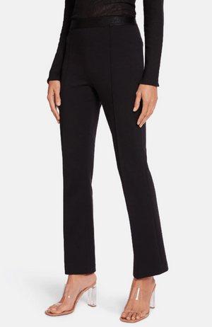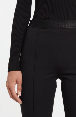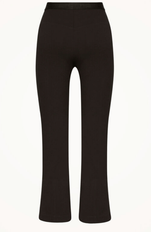 An elevated design - the Grazia pants from Wolford. Made from a black viscose-blend and finished with an elasticated logo-waistband, they are ultimately comfortable, while they're high waist and slim leg with a flared hem ensure an ultimately flattering silhouette