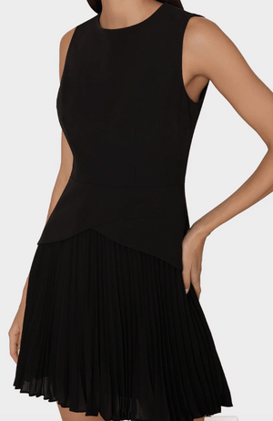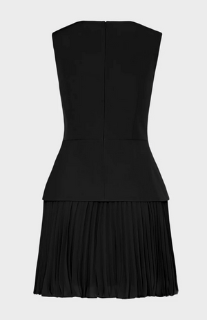 Upgrade your wardrobe with the sophisticated and exclusive Haddy mini pleated dress in black. The minimal design is versatile and perfect for both work and cocktails. The extended bodice creates a flattering v-shape at the waist, while the signature pleated chiffon mini skirt adds a touch of luxury.