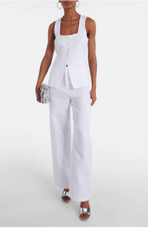 Expertly designed for comfort and style, the JONES PANT in WHITE are a must-have addition to your wardrobe. These relaxed pants boast a mid-rise waist with an elasticated drawstring for the perfect fit, along with convenient side pockets and a flattering wide leg design. Complete the look with the JACKIE VEST or ANA TOP. Elevate your daily look with these versatile and effortlessly chic pants.