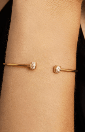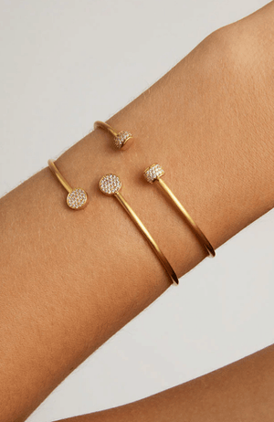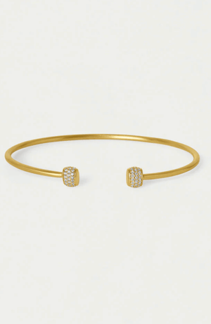 The Juliette Pave Twist Bangle in Gold offers a delicate, flexible design that enhances comfort and ease of wear. Its intricate pave detailing adds a refined shimmer, making it perfect for stacking or wearing solo. This sophisticated piece effortlessly elevates any outfit while allowing you to slip it on and off with grace.