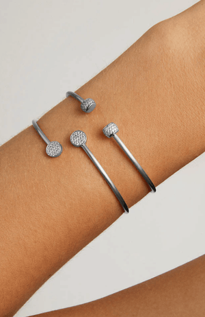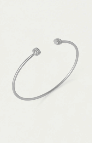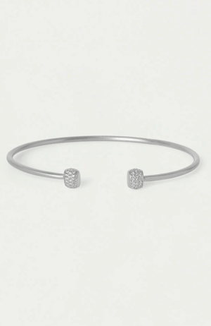 The Juliette Pave Twist Bangle in Silver offers a delicate, flexible design that enhances comfort and ease of wear. Its intricate pave detailing adds a refined shimmer, making it perfect for stacking or wearing solo. This sophisticated piece effortlessly elevates any outfit while allowing you to slip it on and off with grace.