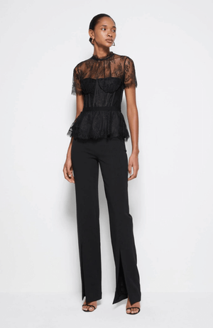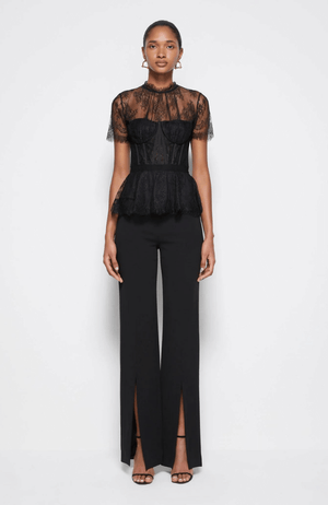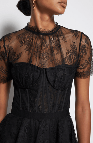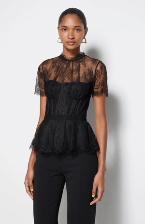 The KEHLANI LACE BUSTIER TOP in BLACK is a lingerie-inspired sultry fashion piece for a modern, feminine look. Crafted from delicate lace, this statement top combines quality with style to create a timeless piece you can wear day or night. Perfect for special occasions or just to make a statement.