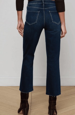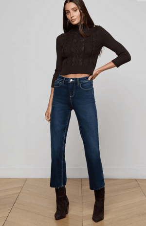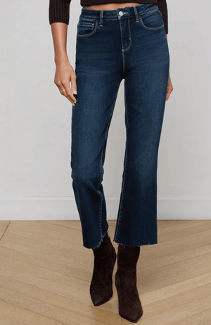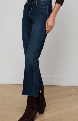 Elevate your wardrobe with the KENDRA CROP FLARE JEAN in BOLTON. This perfectly tailored cropped flare features a versatile dark wash complemented by subtle whiskering at the pockets, enhancing its refined silhouette. Designed to pair effortlessly with both flats and heels, it offers a sophisticated balance of style and comfort for any occasion.
