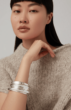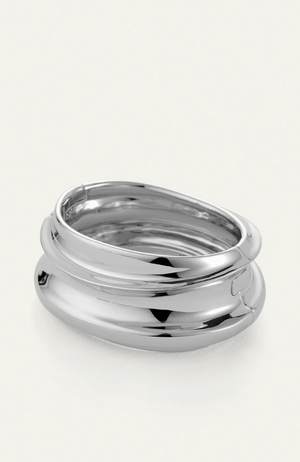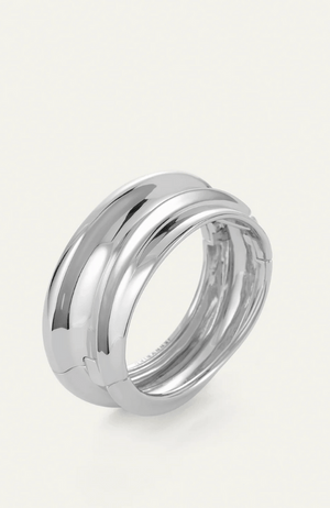 The LENNON MEGA BANGLE in silver makes a striking statement with its deep, sculpted contours and sleek high-polish finish. Crafted for both style and ease, it features a secure hinge and tab lock closure—simply press down on the clasp’s highest point to open, and close until you hear the reassuring click. This elegant piece adds a refined edge to any ensemble while ensuring a flawless fit and effortless wear.