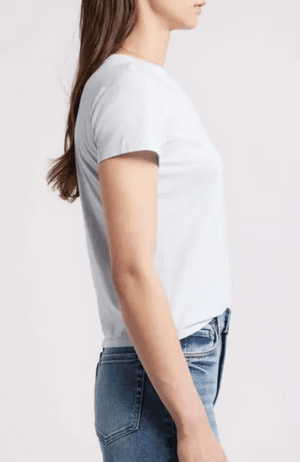 Made from 100% organic linen, our baby tee offers a soft and comfortable fit for everyday wear. Its slightly shrunken fit is perfect for pairing with denim, creating a stylish and effortless look. Say goodbye to fuss and hello to chic simplicity with our light chambray tee.