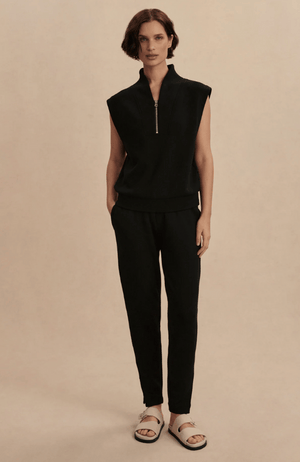 Introducing the LORETTA HALF ZIP - a sophisticated and exclusive sleeveless sweatshirt made from our signature DoubleSoft® fabric. This piece draws inspiration from the iconic Davidson design and features a stylish panelled V-neck. Stay chic and comfortable on warmer days with this go-to DoubleSoft® essential.