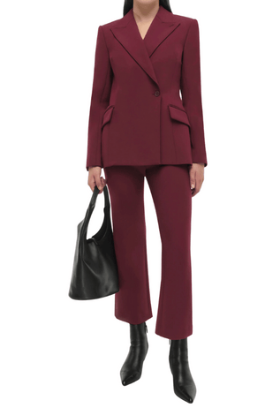 Introducing the sleek and timeless MACKENZIE PANT in OXBLOOD, featuring a high-waisted design for an elongated silhouette. Elevate your wardrobe with these straight-leg bottoms, perfect for pairing with the LAVINA top for a beautiful monochrome look. Expertly crafted for a flattering fit, these pants are a must-have addition to your wardrobe.