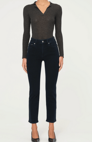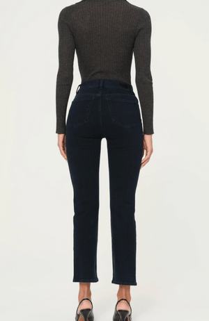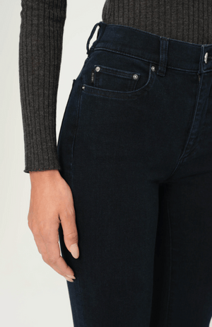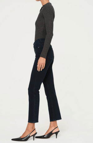 The MARA STRAIGHT INSTASCULPT in FLATIRON delivers a refined silhouette with its mid-rise, ankle-length straight leg cut. Crafted with Instasculpt technology, it gently sculpts and smooths for a flawless fit. The deep indigo wash is complemented by sleek silver hardware, tonal stitching, a clean hem, and a subtle black back patch, making these jeans a sophisticated wardrobe staple.