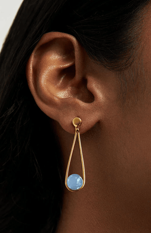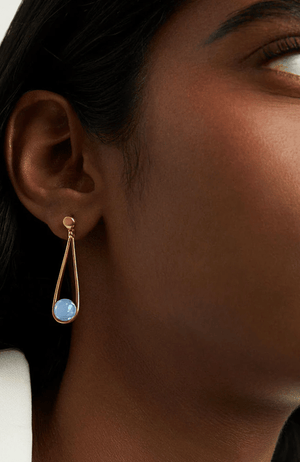 Introducing the MINI IMPANEMA in COASTAL BLUE, a smaller version of their best-selling statement earring. The iconic checkered-cut gemstones and elegant teardrop silhouette make this red carpet staple perfect for everyday wear. Each rare and ethically sourced rainbow moonstone is hand cut, ensuring a unique color for every piece.