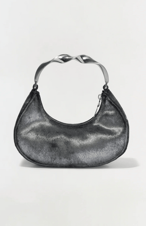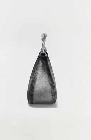 The Nixi Handbag in Sterling combines refined craftsmanship with striking design. Its structured crescent silhouette is elevated by a twisted metal top handle, offering a bold yet elegant touch. Featuring silver grey pony hair, this high-contrast bag makes a sophisticated statement while maintaining versatility for both day and evening wear.