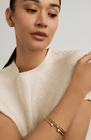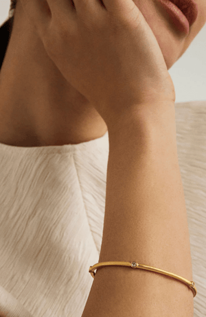 Brilliant hand-set gemstones dot a brushed-finish bangle for an elegant addition to your wrist stack.