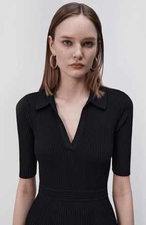 Introducing the PATRICIA POLO MINI DRESS in BLACK - a signature polo dress that exudes elegance and style. Crafted from a beautiful ribbed fabric, it features a classic polo collar for a sophisticated touch. Elevate your wardrobe with this timeless piece.
