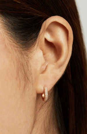 The Petite Pavé Huggies are perfect for stacking or as a classic, everyday piece.