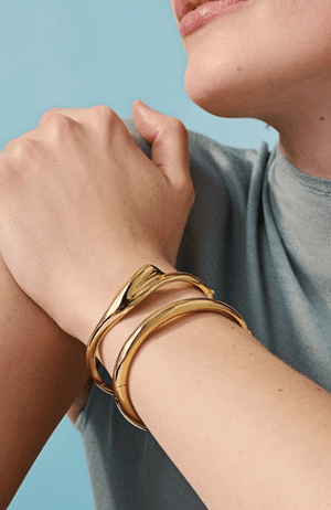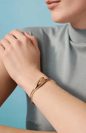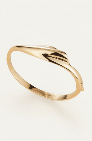 A light and lean bangle featuring a natural scalloped shell. It is water-resistant, making it the perfect gold bracelet to mix into your wrist stack. This custom bangle bracelet opens and closes with a hinge and tab lock closure. To open, push down on the highest point of the clasp before pulling the bangle open. To close, listen for a "click" to ensure tab is locked properly. Finished in high-polish 14k gold.