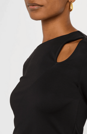 Looking for the perfect little black dress? Look no further than the RADICA DRESS. With its unique twist of cutout shoulder detail, this dress is perfect for any occasion. And with a classic black color, it's a versatile addition to any wardrobe.