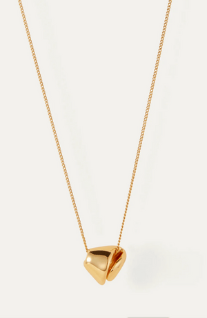 The RIO PENDANT NECKLACE in GOLD features a delicate curb chain with folded pleats of metal forming a small pendant. The slider closure allows for adjustable lengths and it is finished in high-polish gold for a touch of elegance. Perfect for adding a touch of sophistication to any outfit.