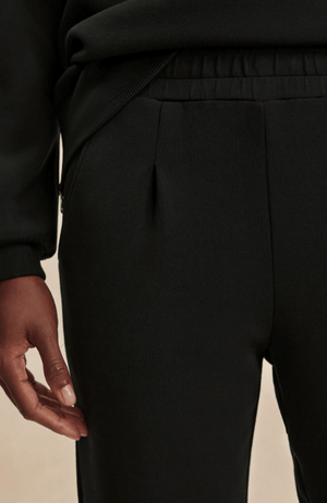 These slim, tapered pants in classic black are designed with a refined rolled cuff and precisely shaped pockets for a polished look. Front and back darts at the waistband ensure a flattering fit, elevating your everyday style. Perfectly versatile, they complement pieces like the DAVIDSON SWEAT DoubleSoft® or CALLIE KNIT, making them a sophisticated wardrobe essential.