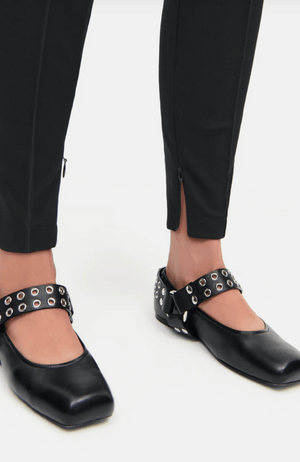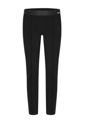 The RYDER Pant Black offers a sleek, slim-fit silhouette in a sophisticated cropped length. Crafted from a soft Punto Milano jersey blend, these high-waisted pants contour the figure while providing exceptional comfort. The elastic waistband, subtly accented with a CMB logo, ensures a secure fit, while the side zipper at the hem adds a refined, modern detail for an elevated look. Perfect for those seeking both style and ease, these versatile pants are an essential addition to any elegant wardrobe.