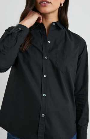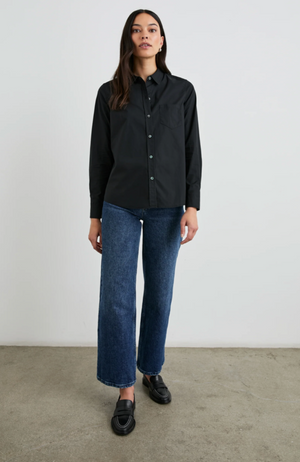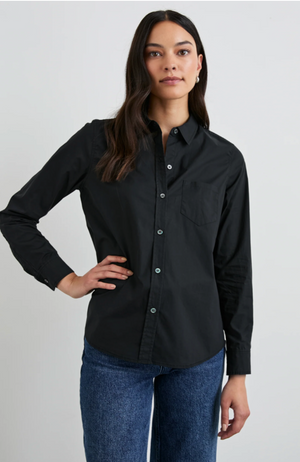 The Stina Shirt in Black combines timeless shirting elements with a tailored fit crafted from 100% breathable cotton. Its lightweight fabric and refined silhouette make it an effortlessly versatile piece, ideal for layering, tucking, or tying throughout the seasons. Designed to complement your favorite Rails denim, this shirt elevates everyday style with understated sophistication. For a more relaxed alternative, consider the Elsa Shirt.