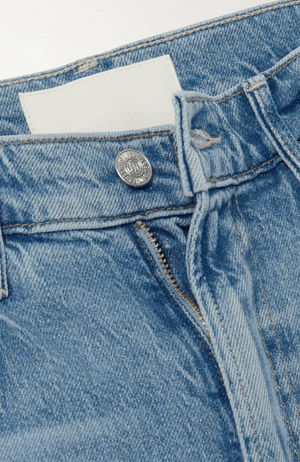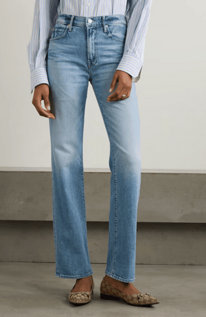 Experience both comfort and style with THE KICK IT in TAROT TIME. These high-rise straight leg jeans have a 32-inch inseam and feature a clean hem. Crafted from denim with a touch of stretch, the light-blue wash with whiskering and fading at the knee adds a touch of personality.
