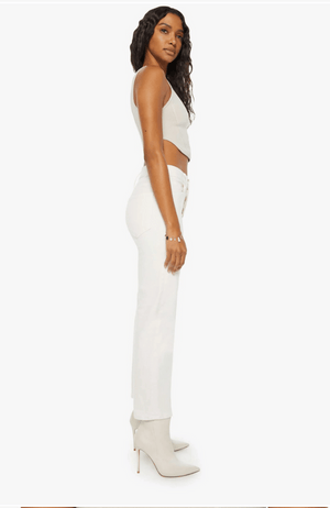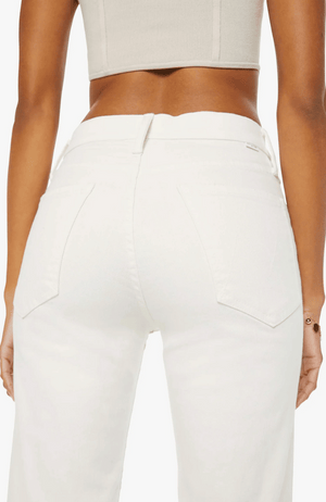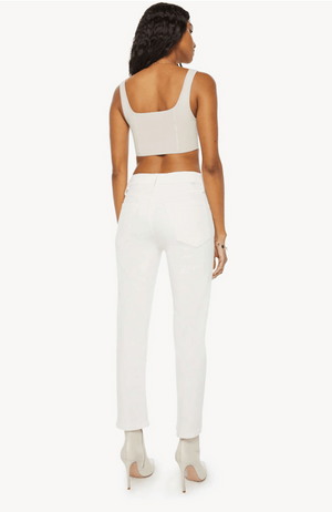 Elevate your denim game with THE TOMCAT ANKLE - CREAM PUFFS. These high-rise jeans feature a stretch fabric for all-day comfort, an off-white wash for a versatile look, and tonal hardware for a sleek finish. The button fly and clean hem add a touch of elegance to the straight leg ankle-length inseam.
