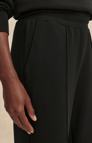 Elevate your wardrobe with these sophisticated Wide Leg Pants in Black. Crafted from ultra-soft DoubleSoft® fabric, they offer exceptional comfort alongside a high-rise waist and a flowing wide-leg silhouette. The elasticated waistband with an internal drawcord ensures a personalized fit, while the subtle pink tuck detailing adds a refined touch. Perfectly balancing elegance and ease, these pants are an essential staple for a versatile, polished look.