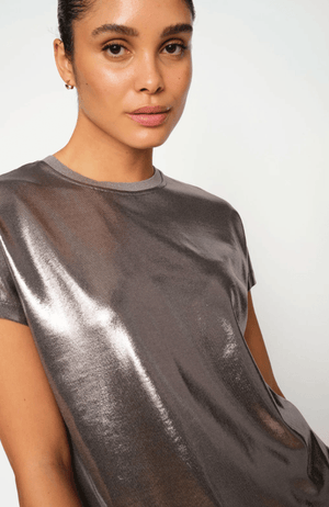 M M NIVOLA O-NECK METALLIC TEE in MOCKINGBIRD