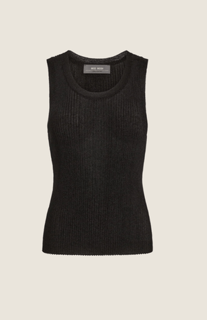 The MM Relena Imanja Knit Tank Top in Black is a refined layering piece that effortlessly elevates any wardrobe. Crafted from a luxurious shimmer knit, this tank features a timeless O-neck and relaxed regular fit that works beautifully under structured blazers and oversized cardigans. The subtle sheen adds understated elegance, while the cosy knit construction provides gentle warmth for transitional seasons. Equally stunning worn solo during warmer months, pair it with tailored trousers or tuck it into a midi skirt for polished, contemporary styling.