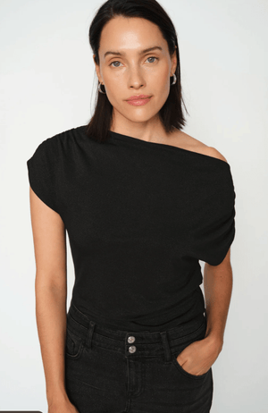 Elevate your everyday wardrobe with this sleek shimmer tee, crafted in a refined, body-skimming silhouette that moves with you throughout the day. A versatile essential that seamlessly transitions from casual to polished—pair it effortlessly with denim for understated elegance or tuck it into tailored separates for a more refined aesthetic. The subtle shimmer adds just enough dimension to make this timeless piece feel distinctly elevated.