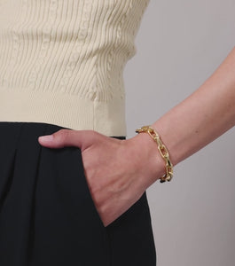 Elevate your look with the LOIRE Bracelet in Gold, featuring chunky, faceted links that catch the light with every movement. Its integrated, elevated closure offers a seamless and refined finish, making this piece a standout accessory for any sophisticated ensemble.