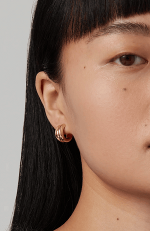 Elevate your look with the MINI LENNON HOOP EARRINGS in GOLD. These delicate hoops feature deep contours that catch the light beautifully, enhanced by a high-polish 14k gold finish for lasting elegance. Perfect for adding a refined touch to any ensemble, they blend subtle sophistication with timeless style.