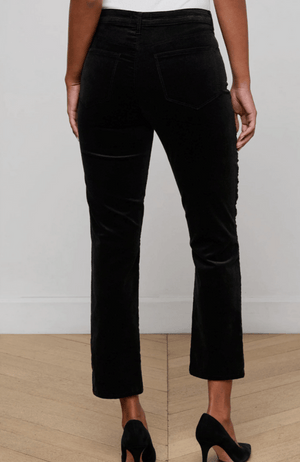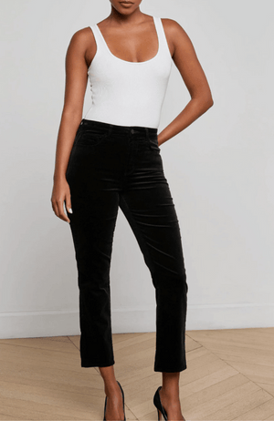 The Celestia Slim in Noir strikes the perfect balance between comfort and elegance, featuring a fit that is more relaxed than a skinny jean but still sleeker than a straight leg. Crafted in luxurious black velvet, this design offers a refined silhouette that flatters every curve while adding a touch of sophistication to your wardrobe. Ideal for both day and evening wear.