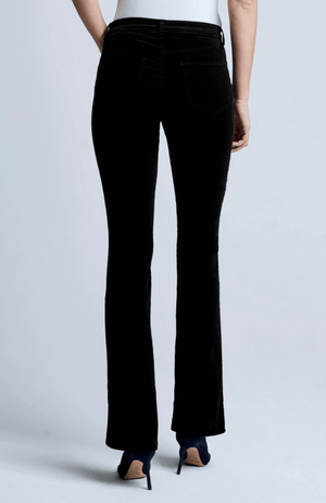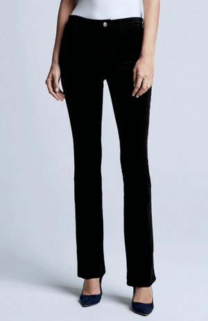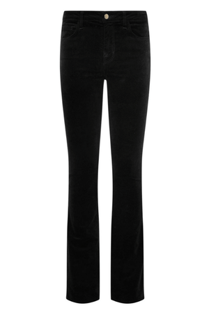 Introducing the STEVIE VELVET JEAN in NOIR - the perfect combination of comfort and style. Crafted from a luxurious black velvet stretch denim, these slim straight-leg high-rise jeans feature a contoured waistband for a flattering fit. The velvet stretch denim hugs the hip, thigh, and knee, before releasing into a classic straight leg. With five-pocket construction and a front zip fly closure, these jeans are a must-have addition to any wardrobe.