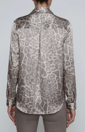 The Tyler silk blouse is a timeless wardrobe essential reimagined season after season in captivating colorways and prints. This long-sleeve button-down silhouette effortlessly transitions from boardroom to brunch, offering refined versatility for any occasion. Crafted in luxurious silk, it drapes beautifully while maintaining its polished structure. This season's grey multi leopard print adds an understated edge to your everyday rotation—a sophisticated take on animal print that pairs seamlessly with tailored trousers, denim, or layered under knits. An investment piece that transcends trends.