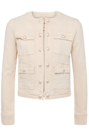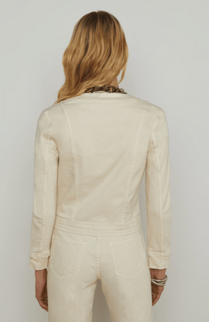 Elevate your denim game with the YARI DENIM JACKET in FRENCH VANILLA. Combining the timeless appeal of a neutral hue with the sophistication of a blazer, this all-cotton jacket offers both style and comfort. Perfect for versatile and polished looks, this is a must-have for any wardrobe. Pairs perfectly with the SADA jeans in vintage white (as pictured).