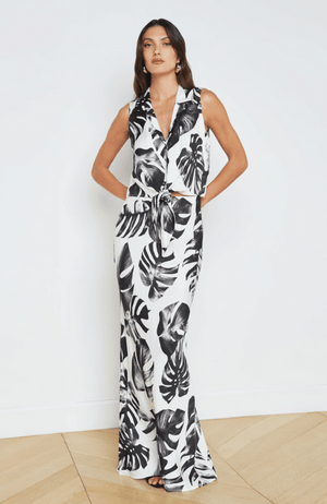 Expertly crafted for elegance, the Zeta maxi skirt features a striking palm-leaf print and flattering bias-cut. The ultra-comfortable elastic waist maintains a minimalist silhouette that will leave you feeling both stylish and comfortable. Complete the look with the coordinating Amos blouse.