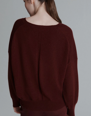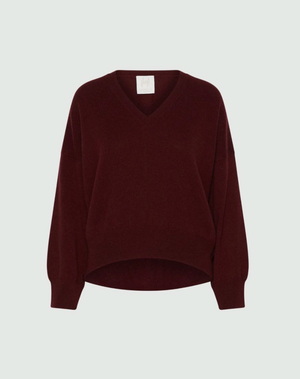 Experience refined comfort with the RAME Cashmere V Neck Sweater in a rich Bordeaux burgundy. This relaxed-fit piece is crafted from premium cashmere, offering softness and warmth with an effortlessly elegant silhouette. Its deep, sophisticated color enhances any ensemble, making it a timeless addition to your wardrobe. Pairs perfectly with the Ionio bag.