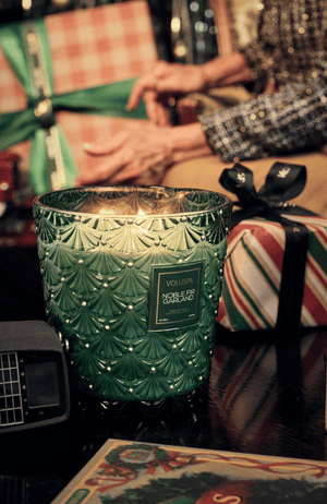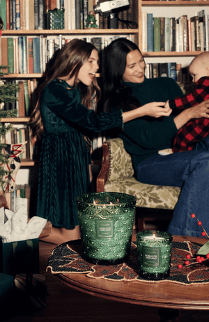 The clock strikes twelve, and the house is still, glowing with anticipation for festivities ahead. Enchanting emerald green and fresh Rosemary garland drape the warm fireplace. The centerpiece of celebration, the tree, reaches out with fragrant branches of Noble Fir and Cedarwood, dusted with festive Cardamom spice. Adorned in the spirit and sparkle of the holidays, a tapestry of Cashmere Musk and Warm Amber lights cast shadows dancing into the morning light. The Holidays have arrived..