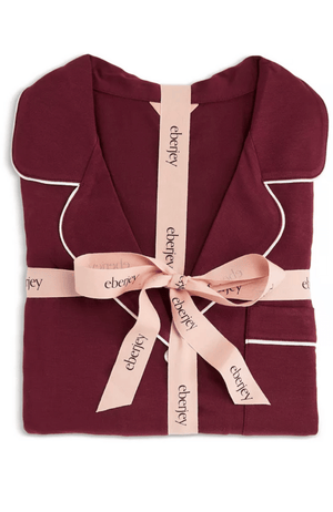 The iconic pajama set that redefined comfort. Crafted from TENCEL™ Modal blended with elastane, this collection features a luxuriously soft fabric certified by OEKO-TEX® Standard 100—ensuring every fiber is dyed with safe, non-toxic dyes. The relaxed long sleeve design showcases elegant contrast piping, a button-front top with refined notch collar and functional pocket, paired with straight leg pants featuring a delicate elastic waistband. Experience the blissful rest you deserve. Arrives beautifully wrapped in eberjey ribbon, ready to gift or keep for yourself.