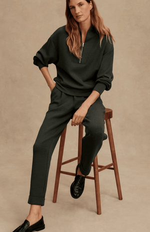 Crafted for a refined silhouette, these 25" pants showcase a distinctive rolled cuff and tailored details including shaped pockets and strategic front and back darts at the waistband. The slim, tapered cut delivers a polished, contemporary look that pairs seamlessly with our DoubleSoft™ sweater collection. A sophisticated staple designed to elevate your everyday wardrobe with understated elegance.