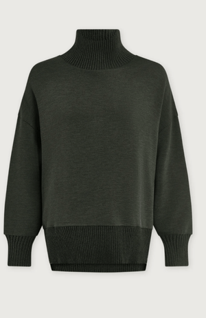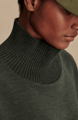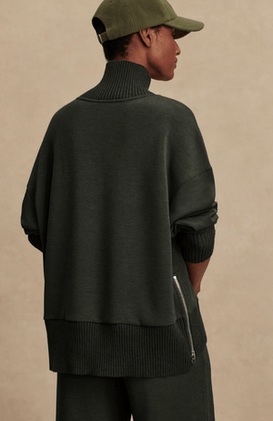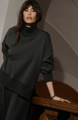 This sophisticated sweatshirt in luxurious DoubleSoft® fabric features an oversized silhouette and a contemporary high-neck design. Thoughtfully detailed with knitted cuffs, neck, and hem, it offers deep side splits to enhance both movement and style, making it a refined yet comfortable wardrobe staple. Complete the look with the matching EXTRA WIDE LEG PANT (as shown).